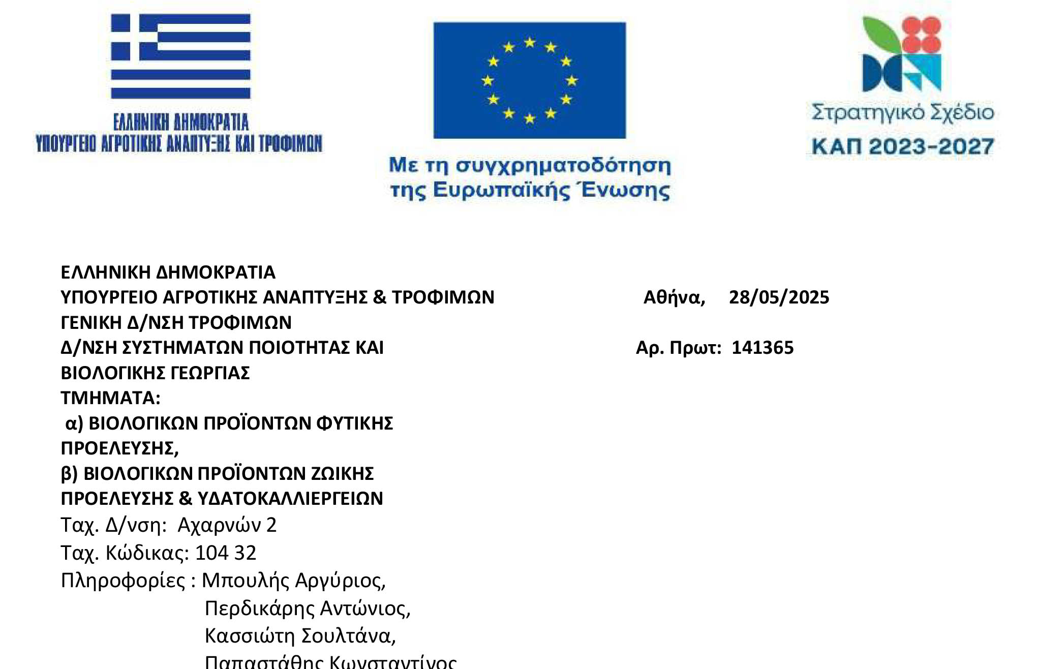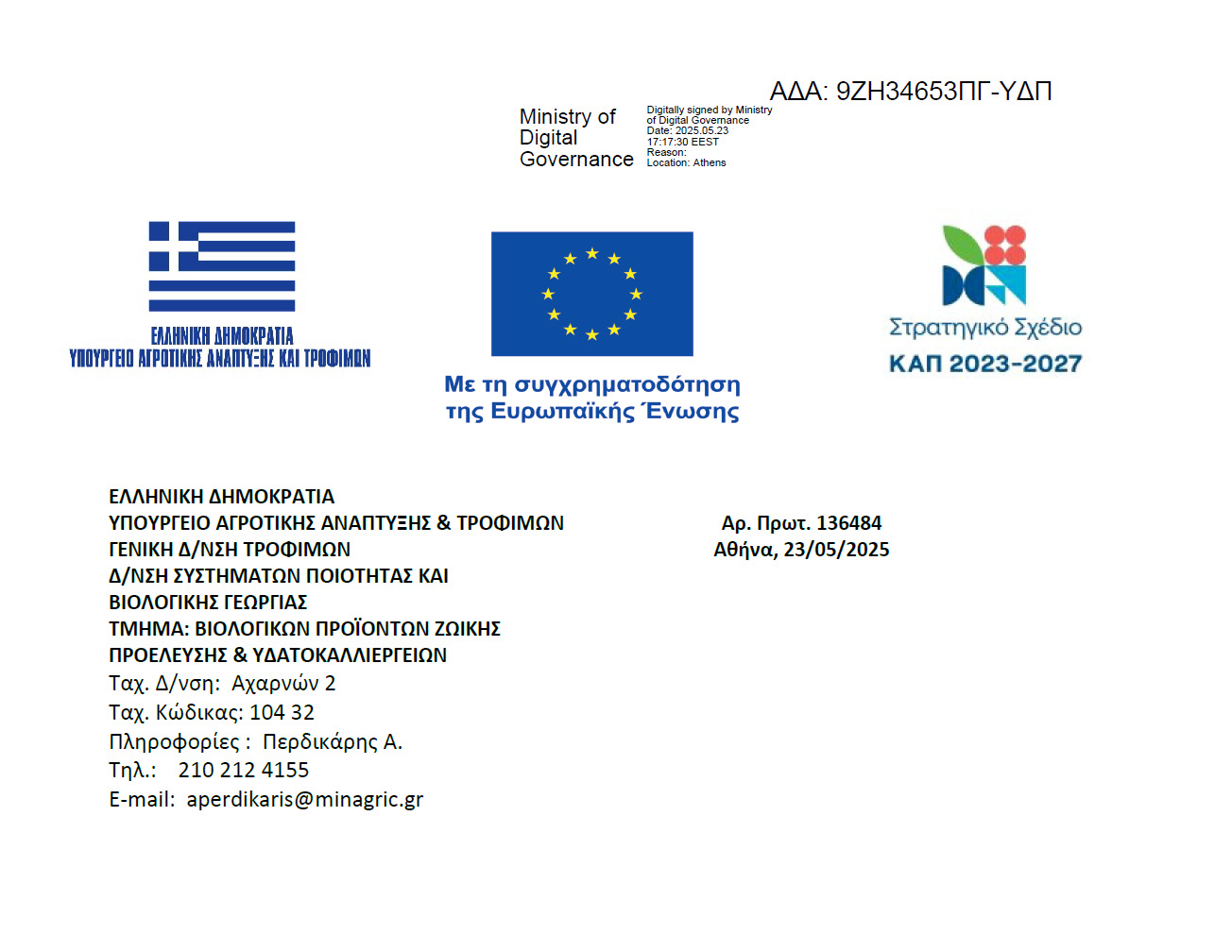 Ψηφιακή Πλατφόρμα Συμβουλευτικής Υποστήριξης Εγκατάστασης και Διαχείρισης Βιολογικών Καλλιεργειών